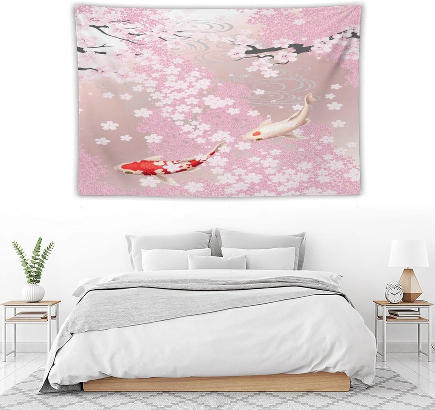 Houselerax Japanese Koi Fish Tapestry, Cherry Blossoms Asian Oriental Pink Flower Branch Koi Fish Carp Tapestries Wall Hanging for Bedroom Living Room Office Decor 60"x40"