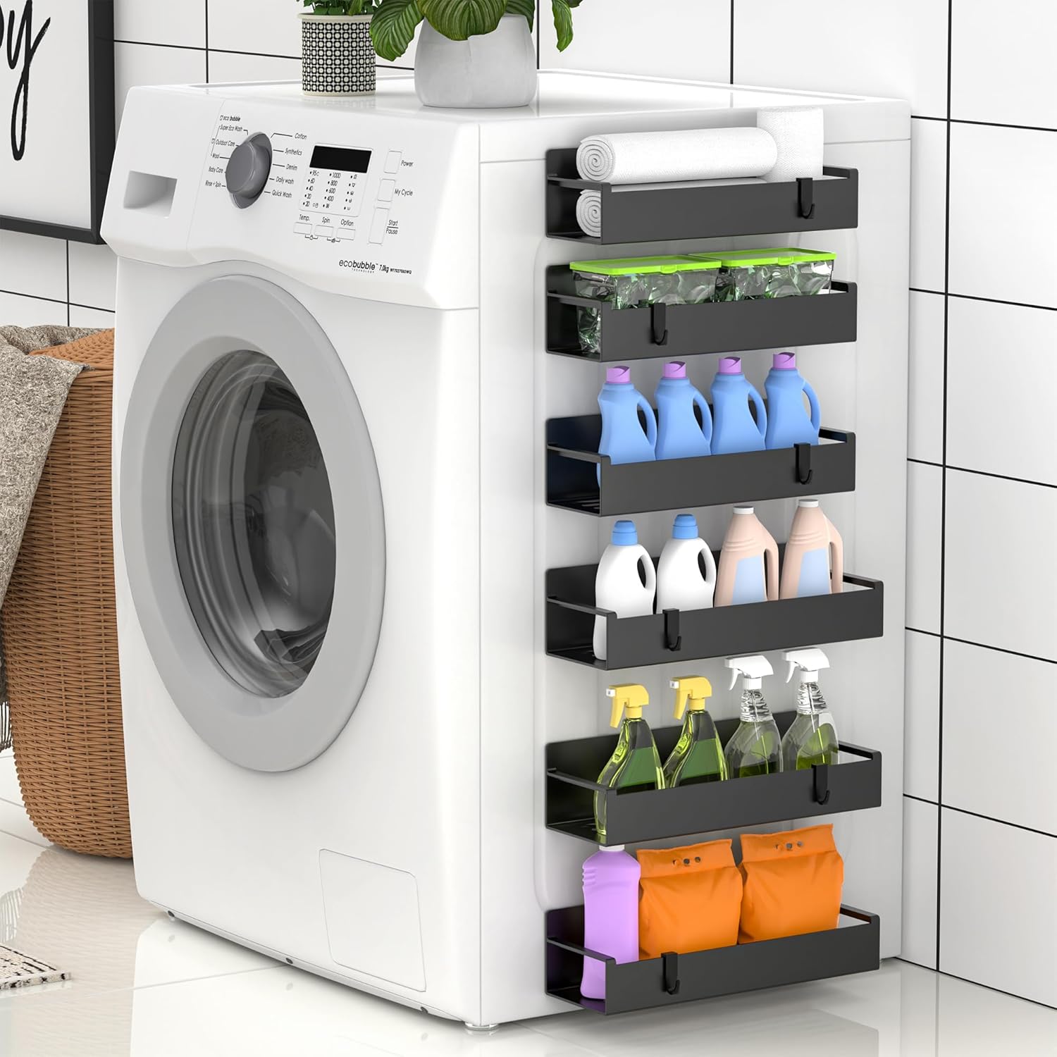 6 Pack Magnetic Spice Rack Organizer for Refrigerator and Oven, Black Fridge Organizers and Storage for Kitchen
