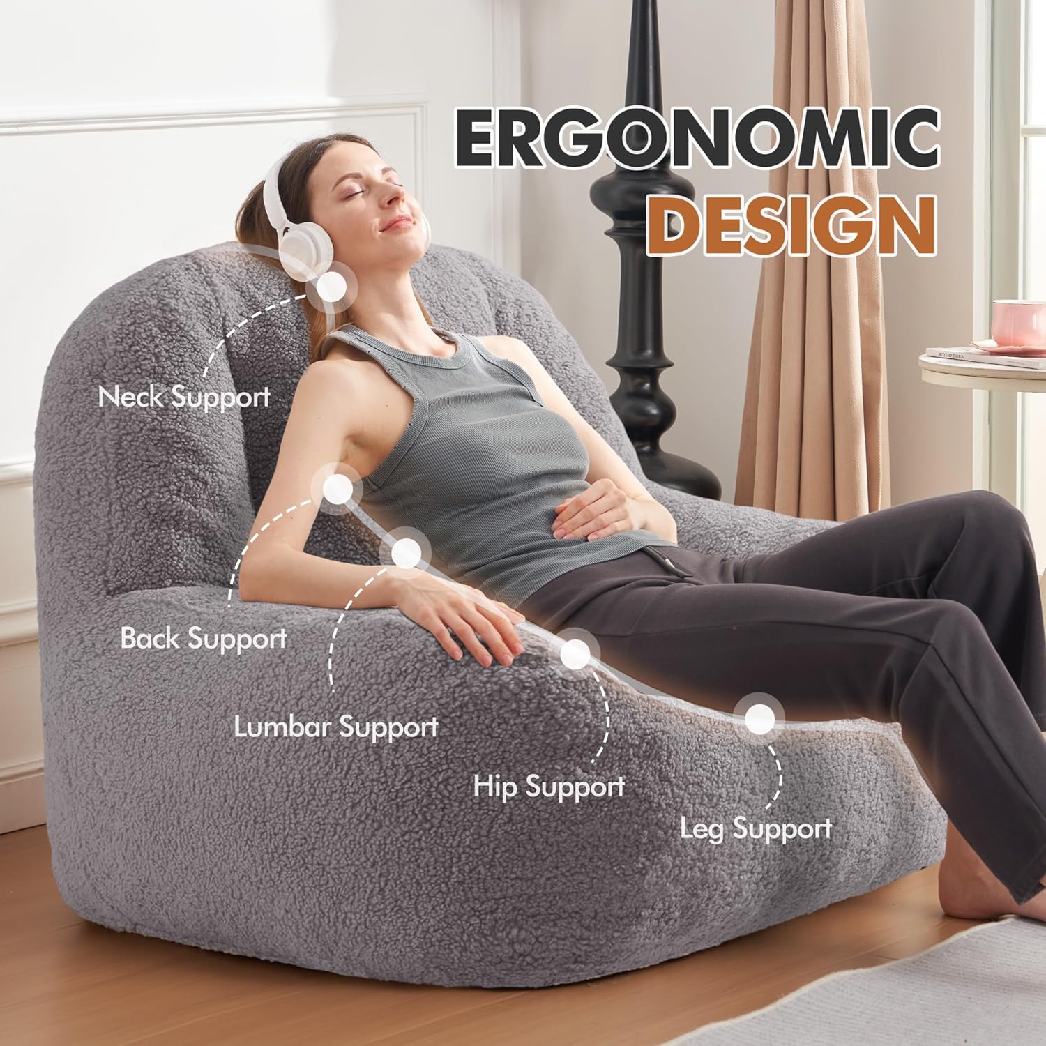 - Soft and Skin-Friendly Fabric: The soft faux sherpa teddy fabric provides a soft and skin-friendly texture, offering a warm ,fluffy and cozy feeling, especially during chilly days, creating a comforting embrace. The bean bag sofa combines aesthetics, comfort, and durability, providing you with the excellent seating experience to enjoy your time.