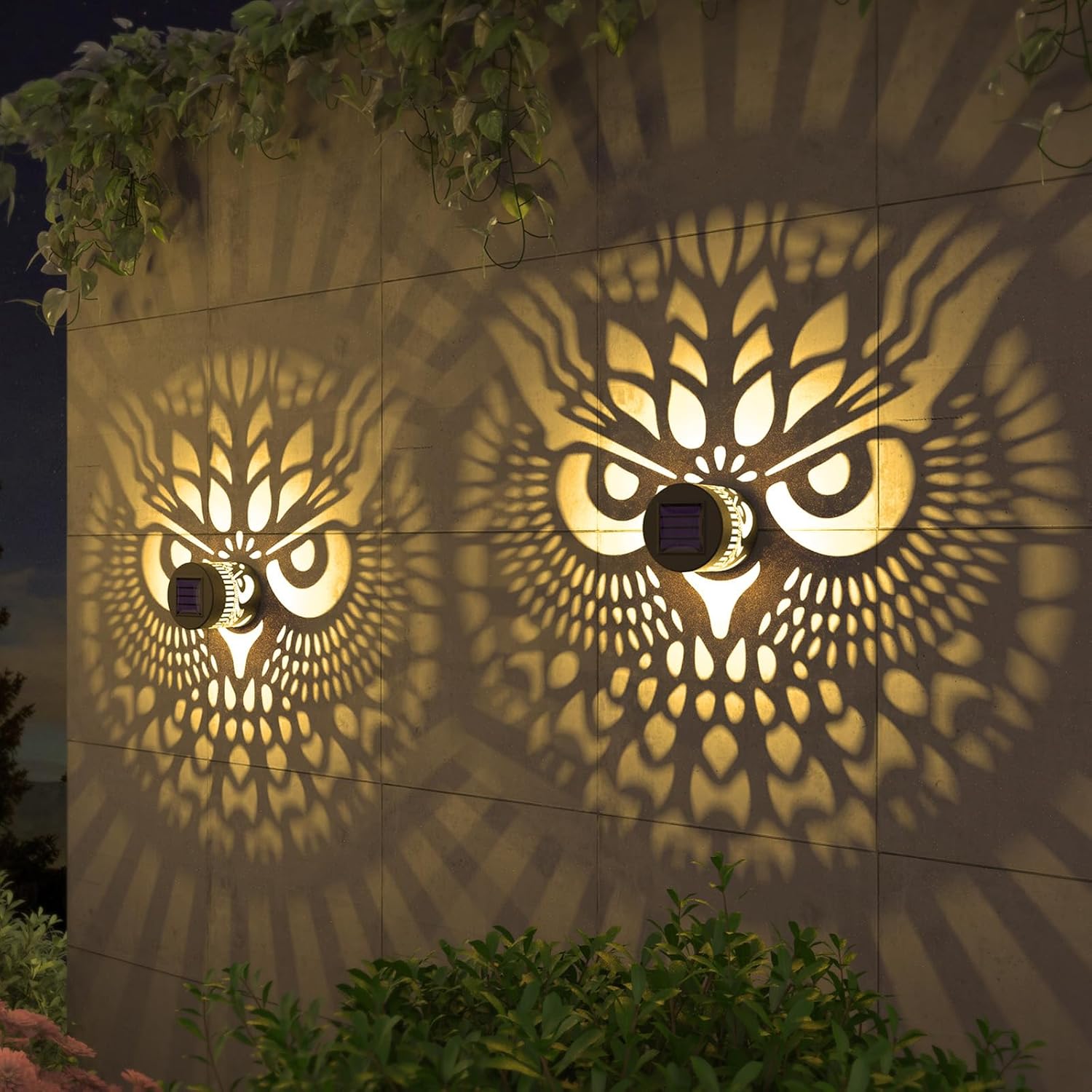 - Good Decoration: 10 lumens of warm yellow light. The small fence solar lights can project a unique and beautiful owl pattern. In a dim environment, the solar lights can illuminate a corner of the fence or the wall and create a beautiful and warm atmosphere. They are very suitable as holiday decorations and gifts for relatives and friends.