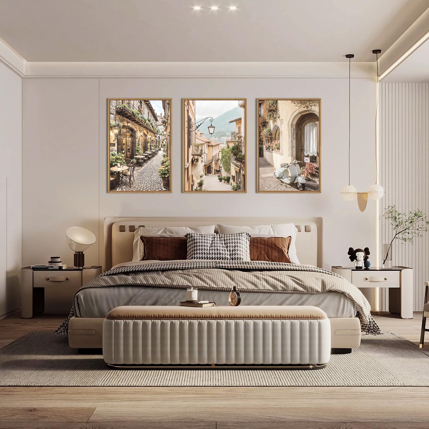 HPINUB Foreign Scenery Framed Canvas Wall Art Set,Vintage Travel City Wall Decor,Modern Minimalist Europe Street Picture Artwork Nature Landscape Art Print for Living Room,Bedroom-16 x24 x3