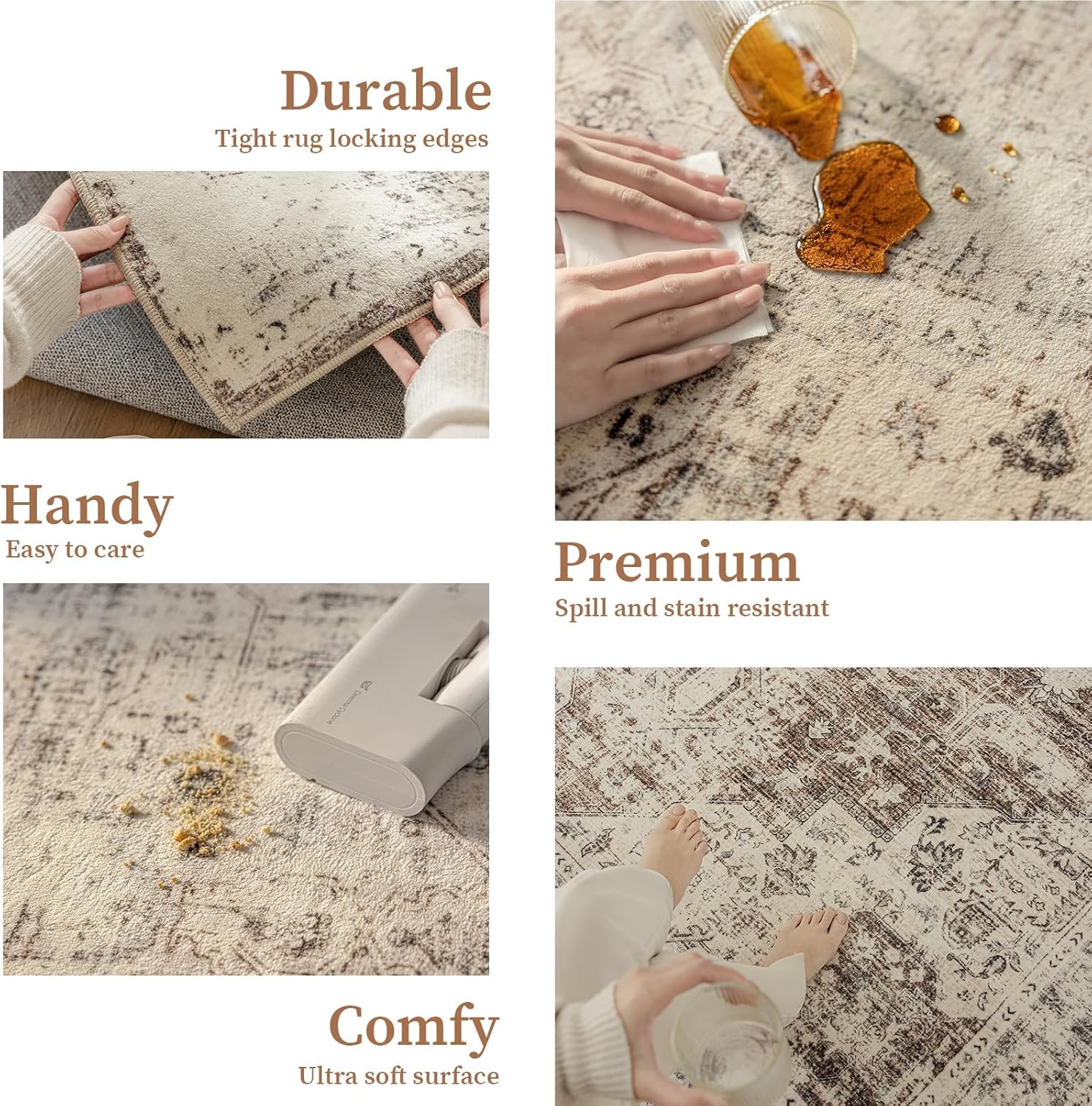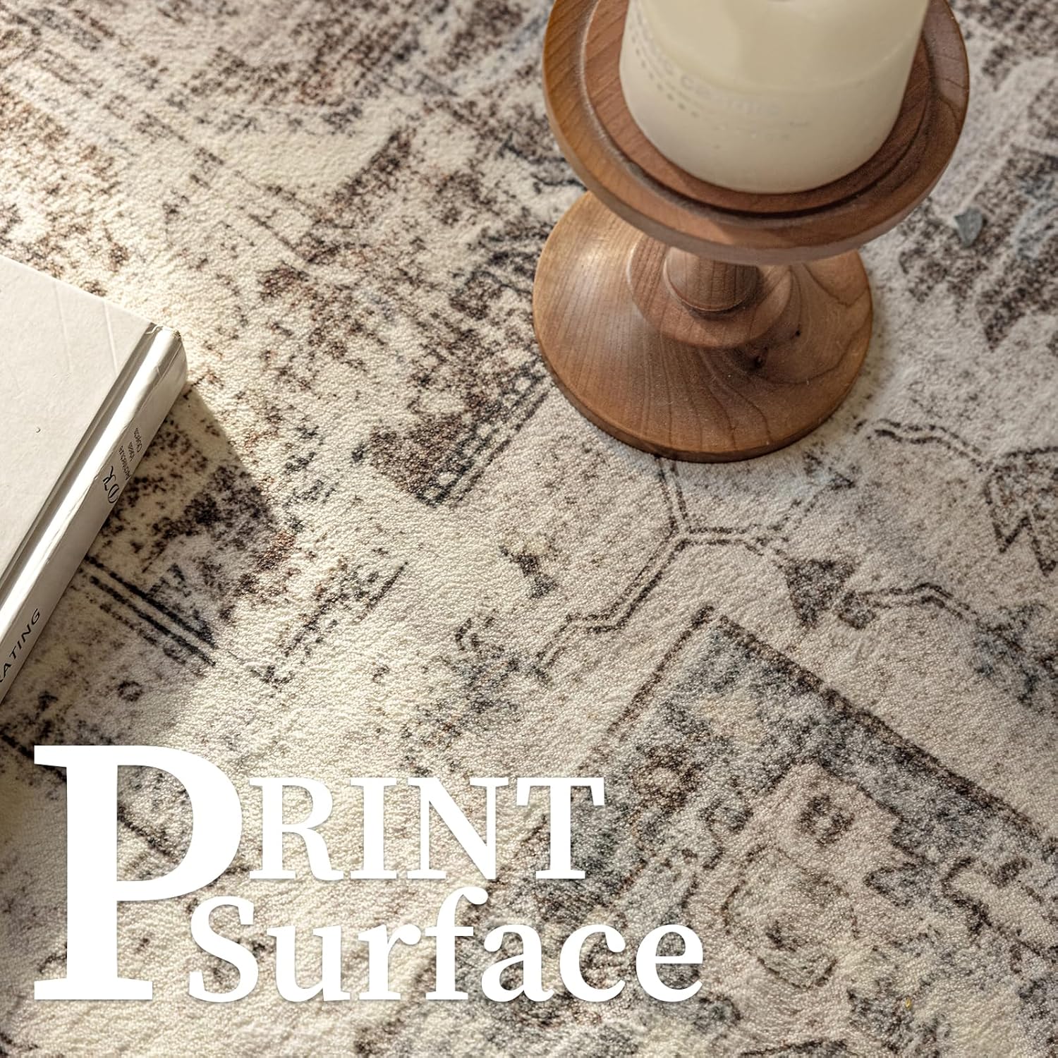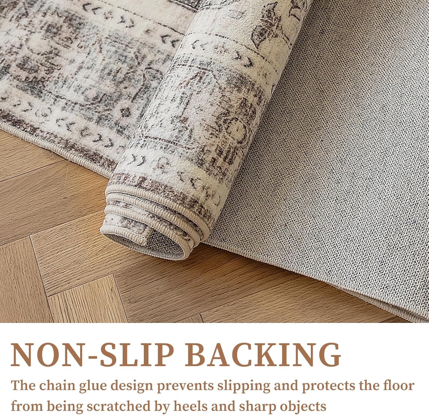 5'x7' Area Rug - Vintage Persian Medallion Design Low-Pile Faux Wool Rug, Non-Slip Backing, Machine Washable, for Living Room, Dining Room, Bedroom (Cream/Taupe)