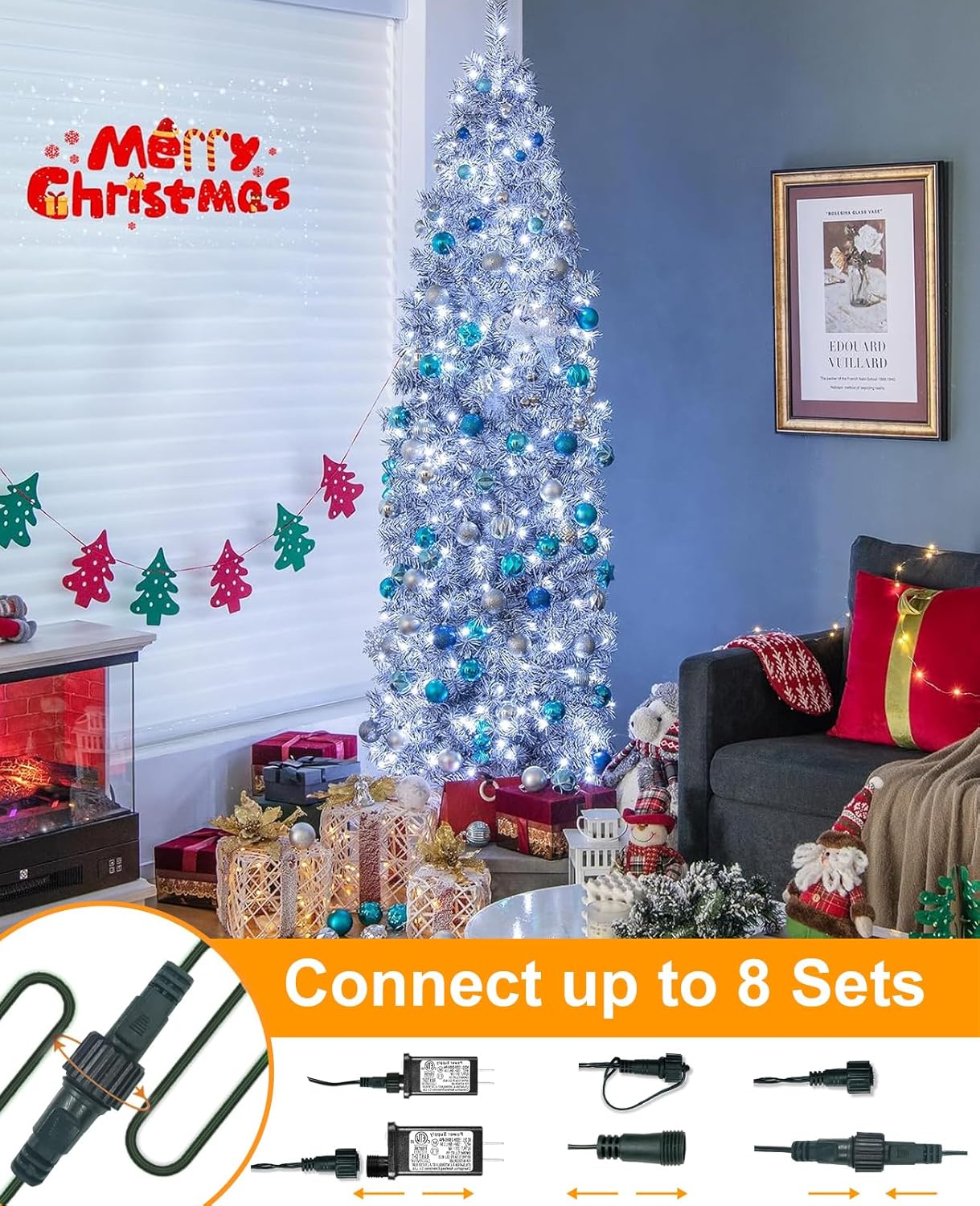 - 【Connectable Christmas Lights】The led Christmas Lights are 50ft in total length, with 40ft of strings containing 120 LEDs and 10ft of lead wire. Each string light indoor has end-to-end connections, up to 8 sets (320 feet) can be connected to illuminate a larger area. Ideal for decorating Christmas trees, bedrooms, patios and gardens.