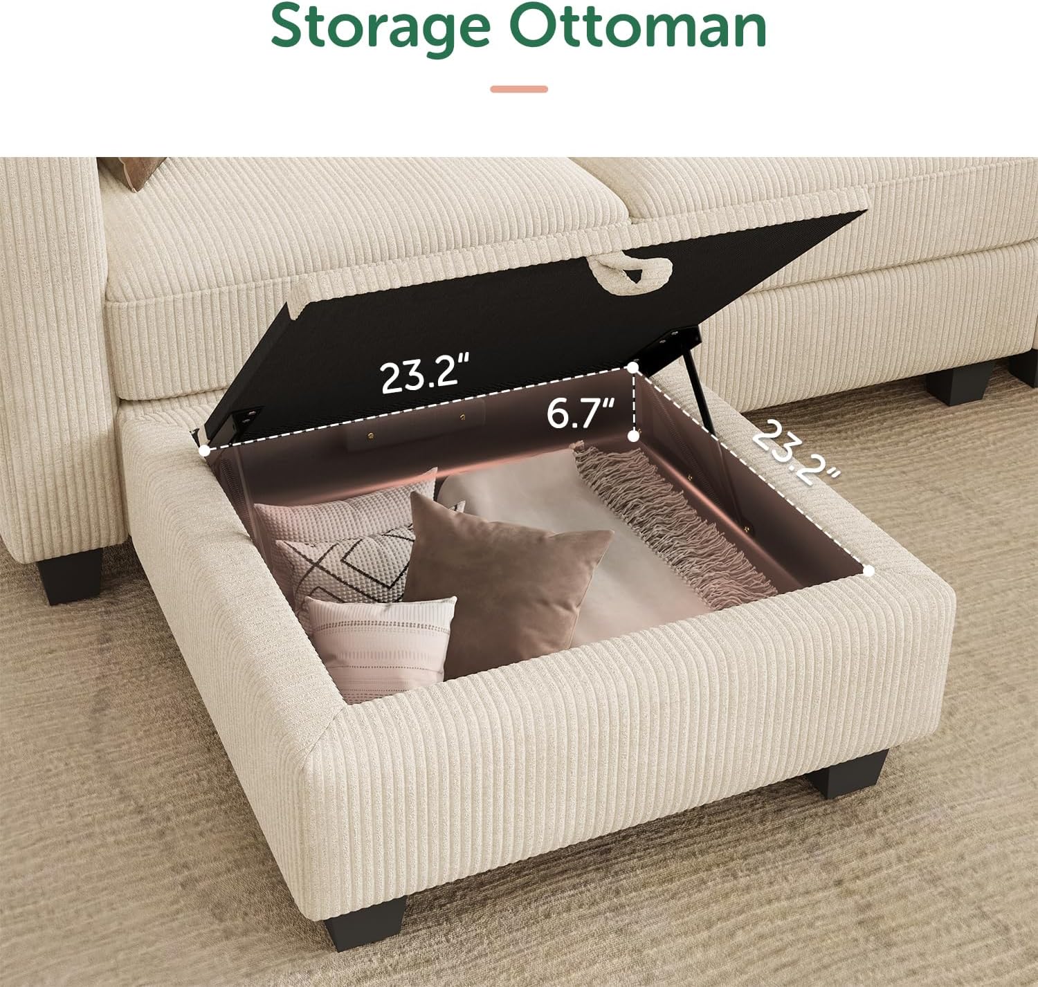 HONBAY Corduroy Sectional Sofa with Storage, U Shape Modular Sectional Sofa with Chaise, Modular Couches for Living Room, Beige
