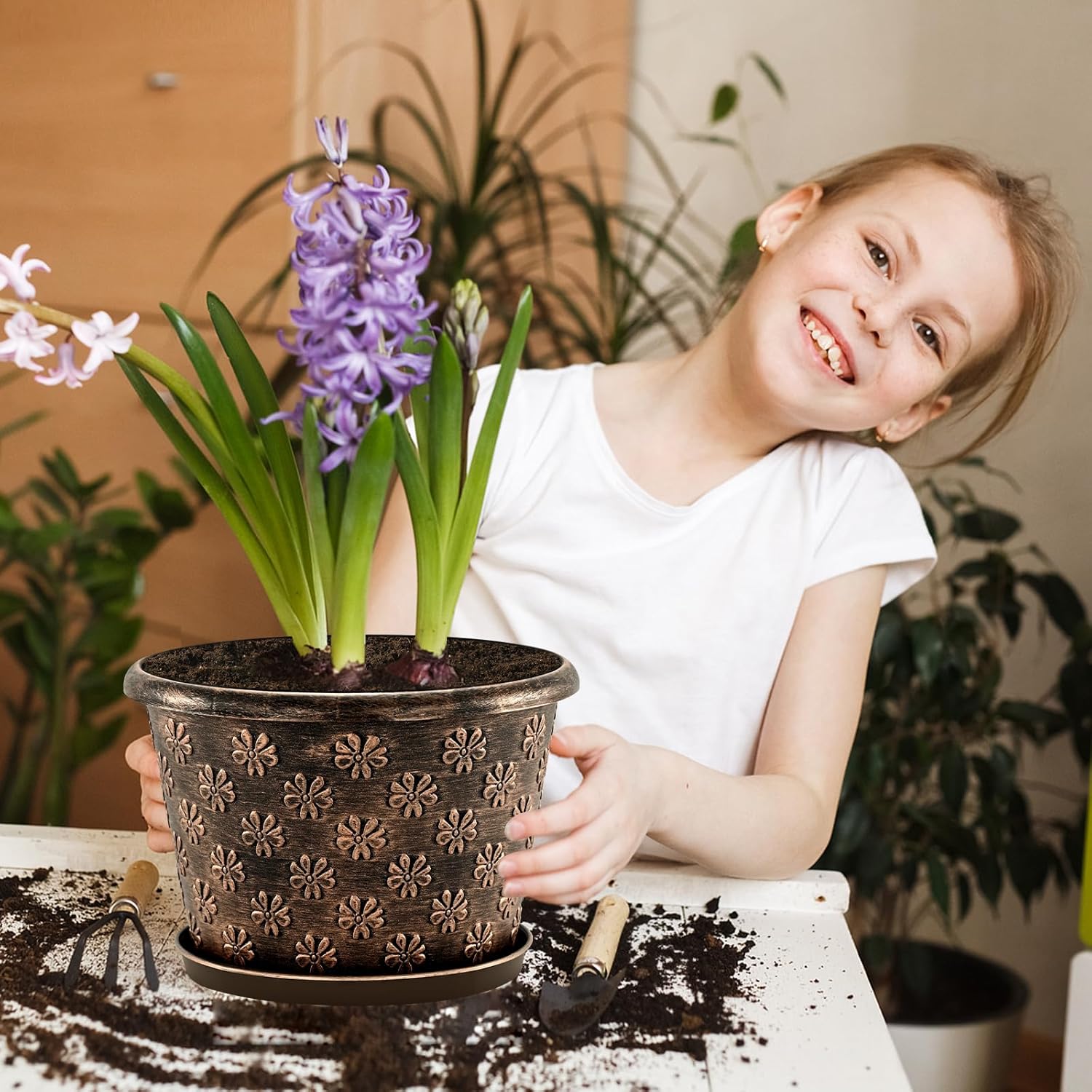 - 【Stylish Look For Decorative】We design plant pots indoor with a beautiful embossed flower pattern on the surface, elegant appearance making it ideal for home decor, garden decor and office decor. Enhance your space with these retro planters and watch your plants flourish.