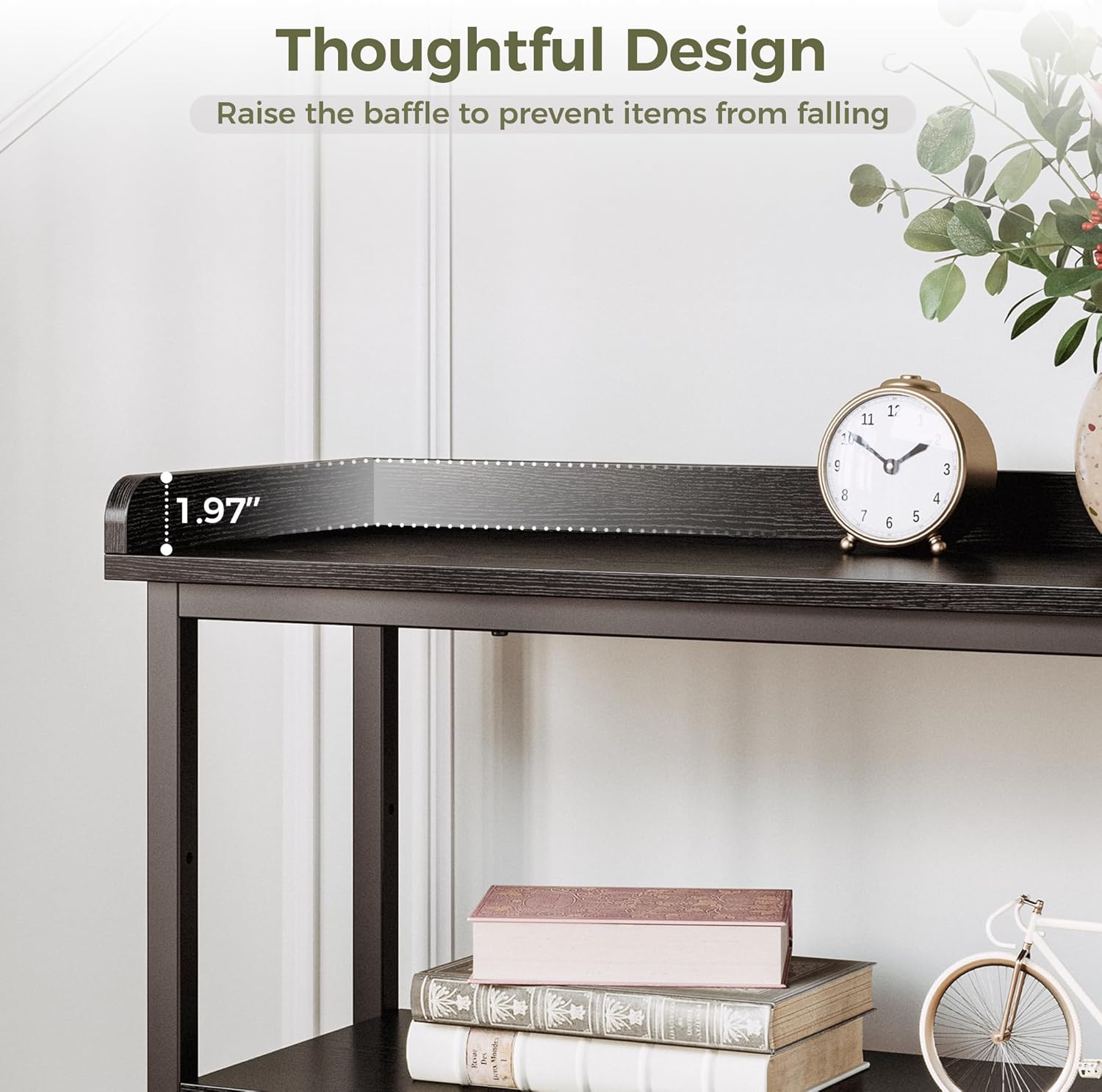 - Careful Design: More than other entryway tables , IRONCK entryway table has added a baffle design on the top to hang umbrellas on it; it also prevents items from falling