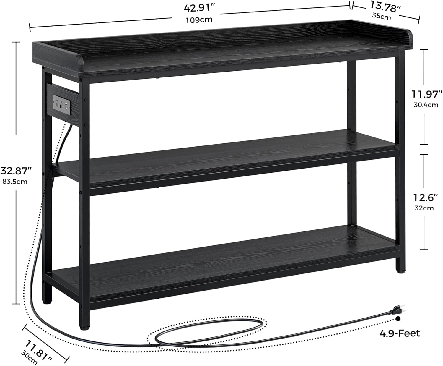 IRONCK Console Table, Sofa Table with Power Outlet, Farmhouse Hallway Table for Entryway, Living Room, Height Adjustable, Easy Assembly, Vintage Black, 43"