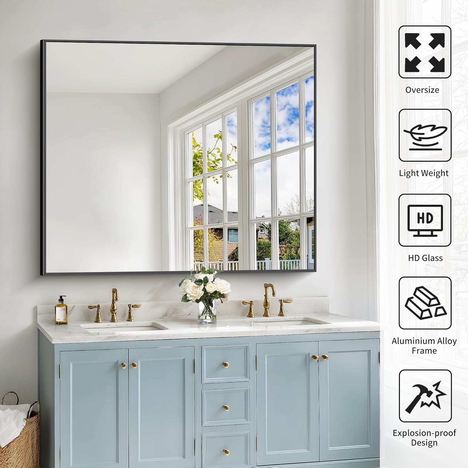 40x48inch Black Bathroom Mirror, Black Rectangle Mirror with Frame, Large Rectangular Wall Mirrors for Bathroom, Living Room, Hair Salon, Big Farmhouse Mirror Hang Horizontal/Vertical