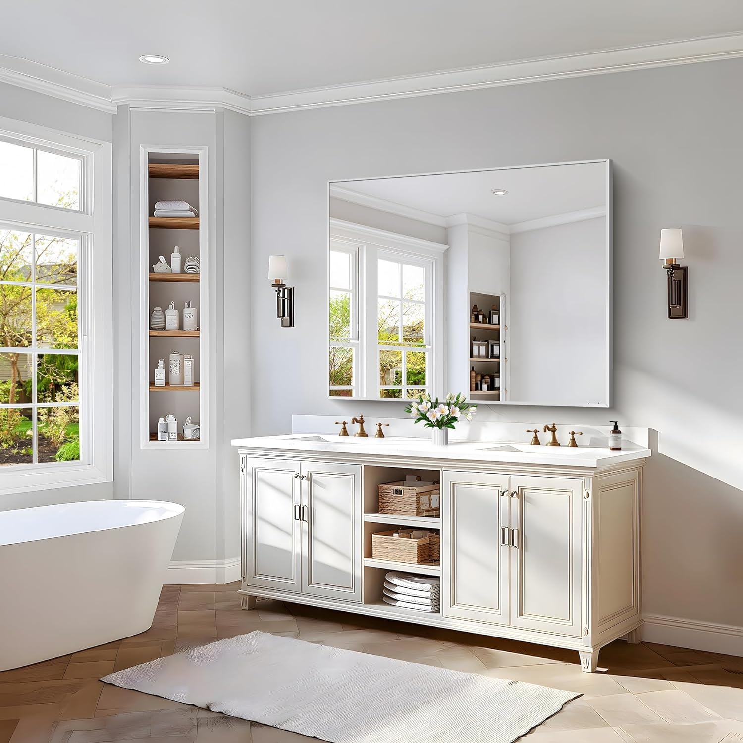 - STURDY PACKAGE: Bathroom mirror is not only protected with multiple layers of packaging to safeguard the glass, but also features reinforced corner guards to prevent scratches or damage to the corners during transportation