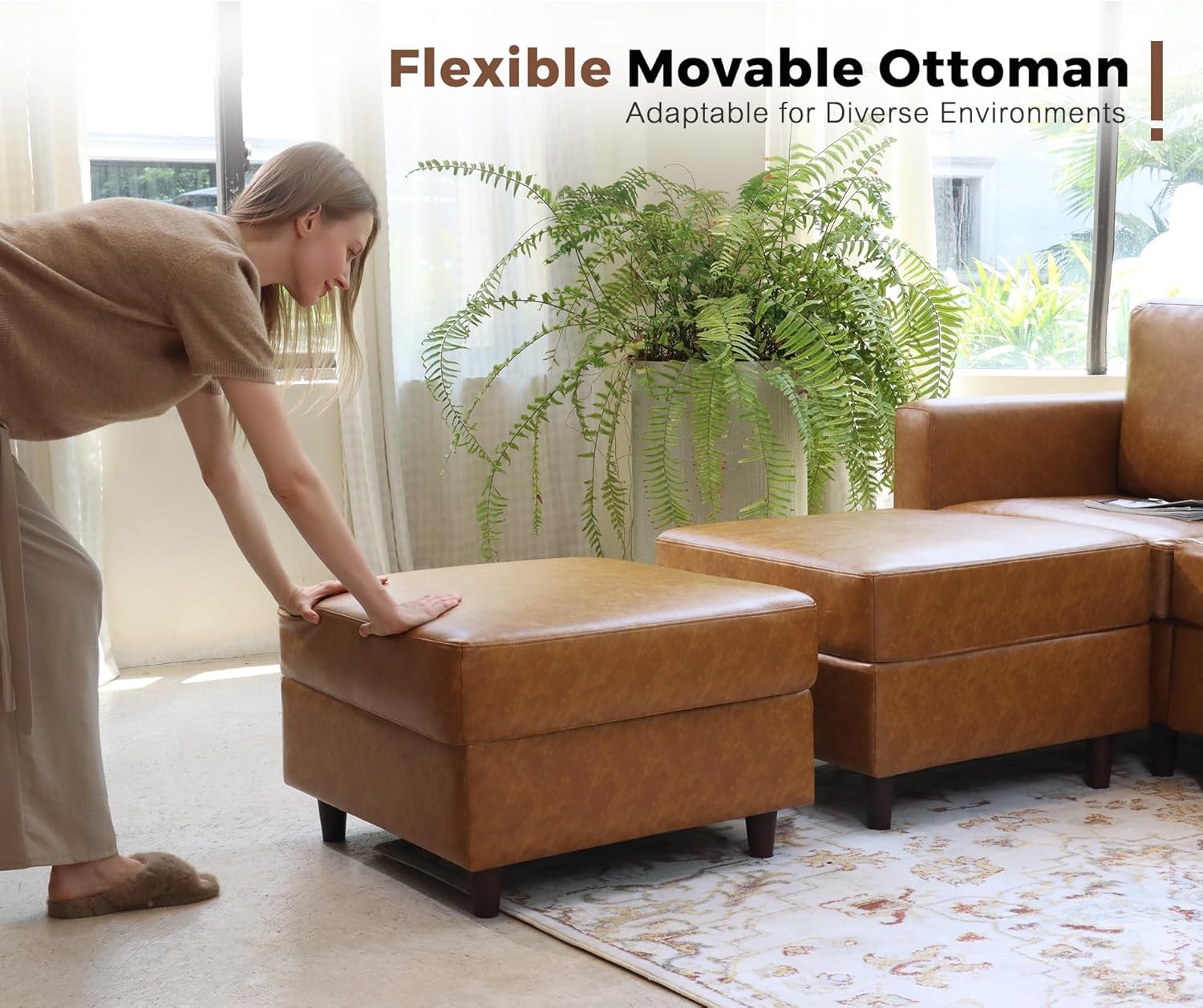 118.5" Faux Leather Modular Sectional Convertible Sofa, L Shaped Couch Set for Living Room, Large 8-Seater Comfy Cloud Couches with Movable Storage Ottoman DIY Combination - Brown