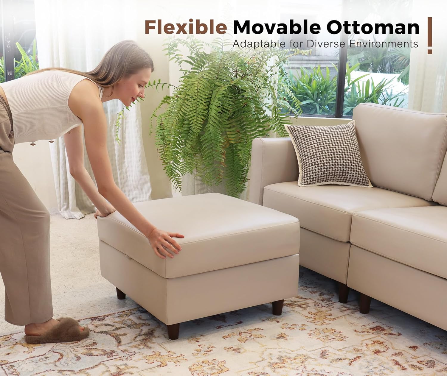 - 💡Large Storage Modular Sofa: Hidden compartments under every seat maximize space efficiency. Store blankets, toys, or magazines to reduce clutter. Slim-profile design maintains room aesthetics.
