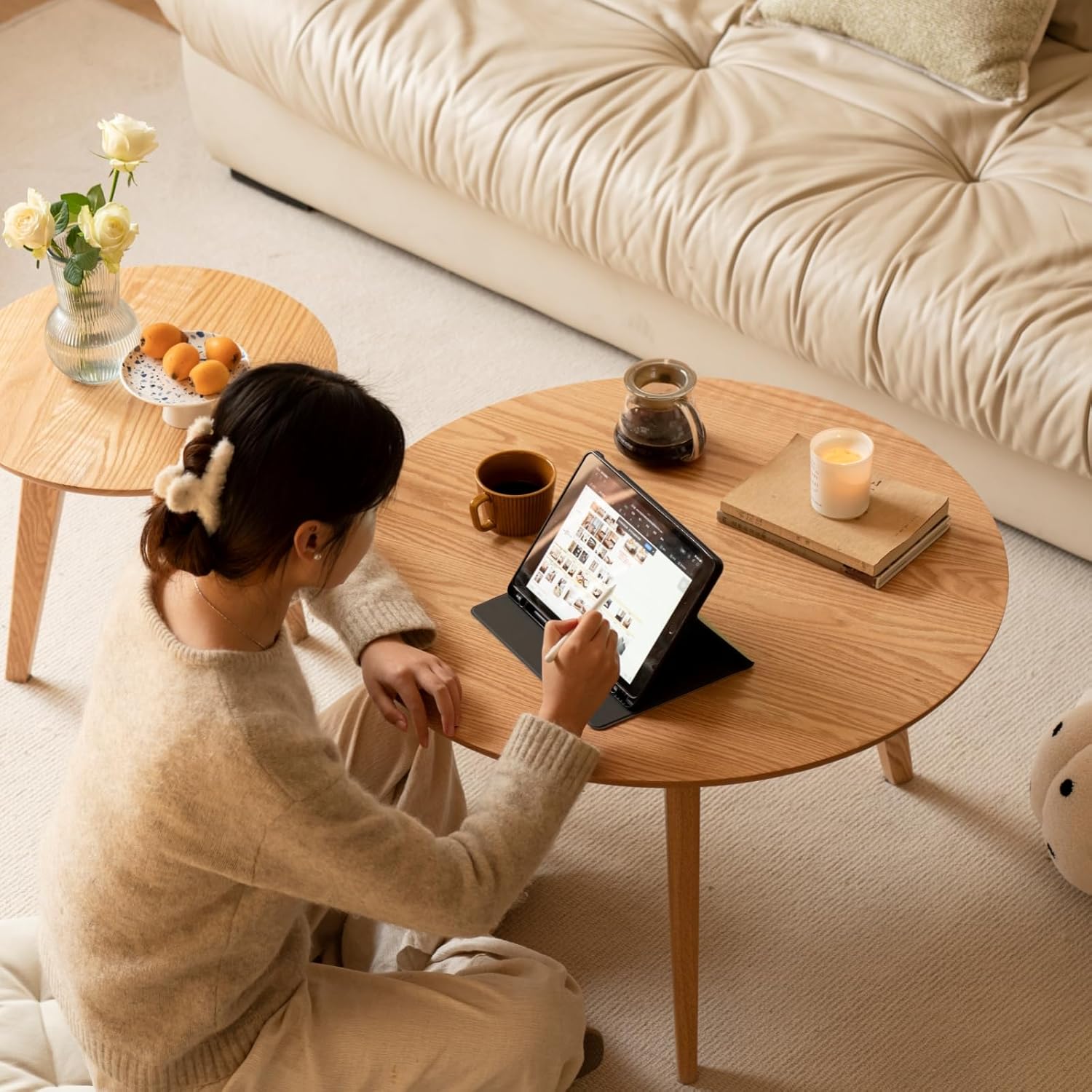 - 【Classic Mid-Century Modern Style】Featuring a distinctive round design, this round mid-century coffee table creates a nesting table layout with its high-and-low combination. The timeless mid-century modern coffee table style seamlessly blends with most home décor, adding elegance and charm.