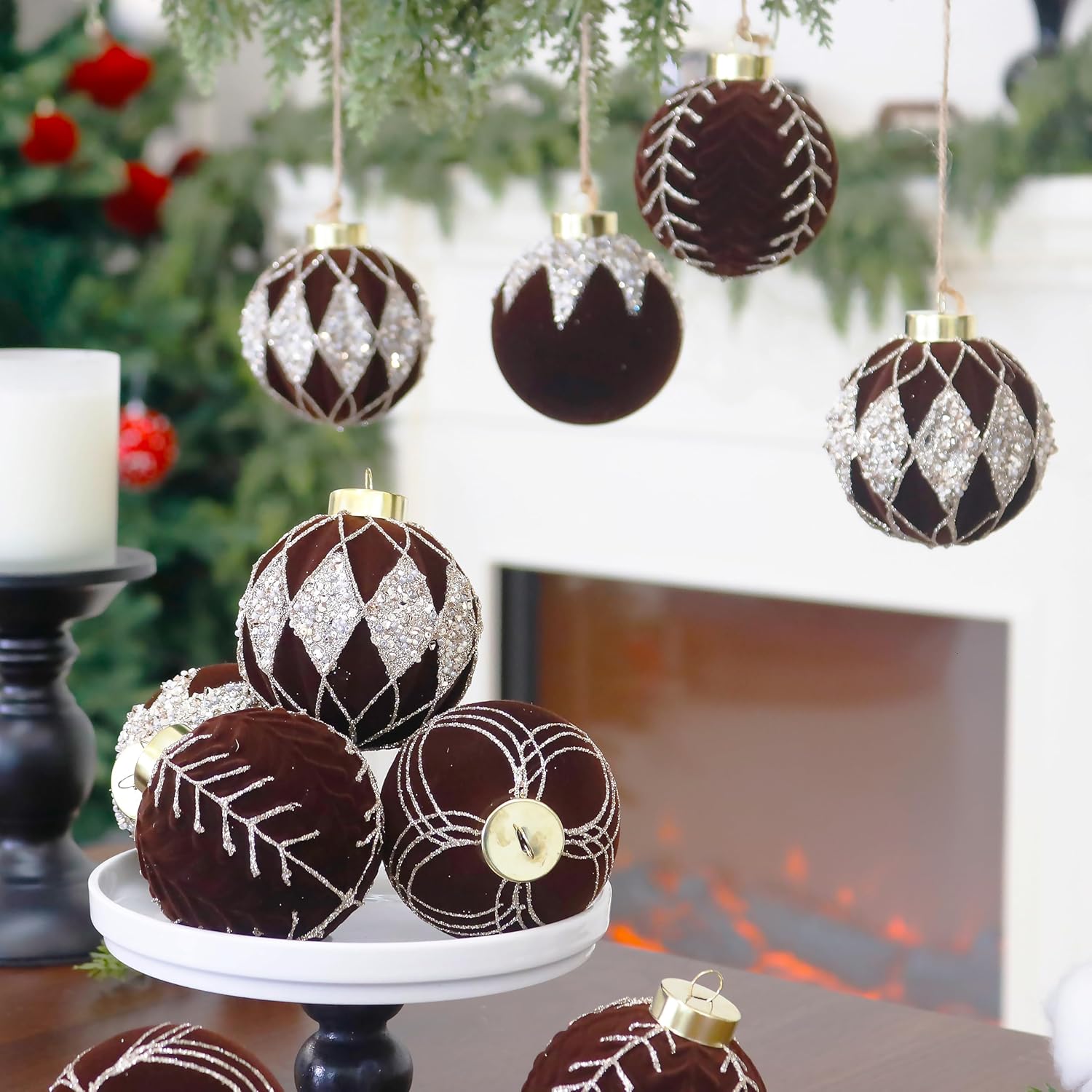 • Flocked Design: the Christmas ornaments balls enjoy flocking texture,scattering these velvet Christmas hanging balls can create a retro and beautiful effect, transforming your home into a distinctive and elegant winter scene