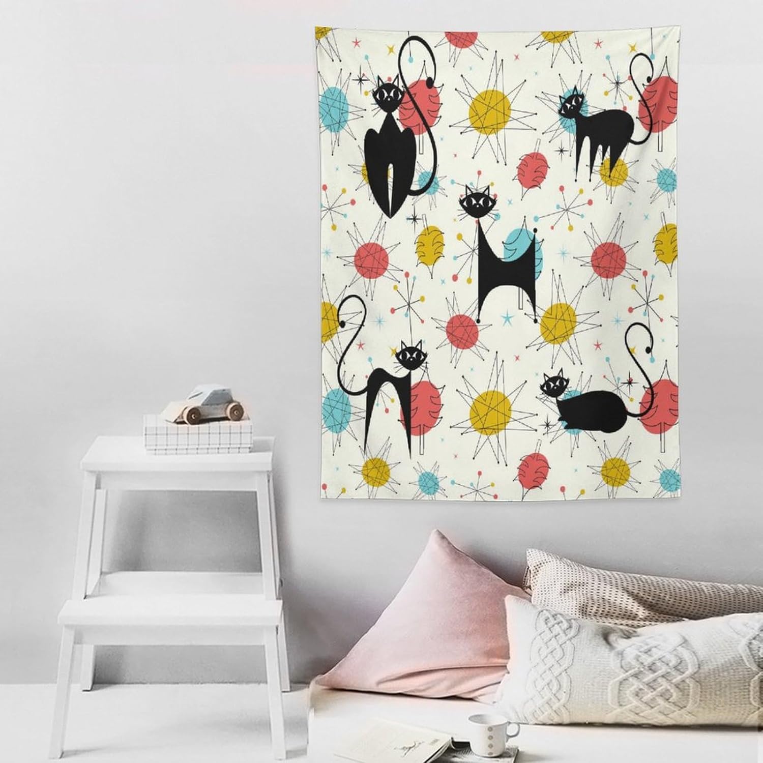 ICMOLYYENLO Abstract Cat Tapestry, Medieval Abstract Atomic Star Cat Vintage Home Wall Hanging Art Tapestry for Bedroom Living Room Dormitory 60x60 Inch
