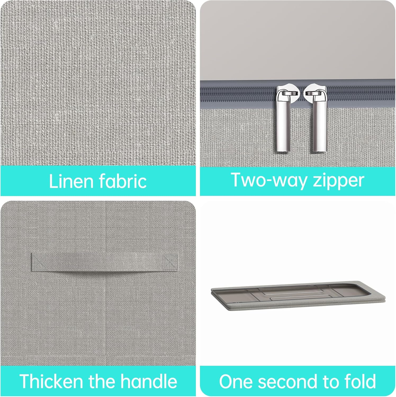 3PCS Under Bed Storage Bins with Metal Frame, Linen Fabric Frame Storage Box Clothes Organizer Bins, Underbed Container with Clear Window (Light Grey, 15.7 x 13 x 6IN)