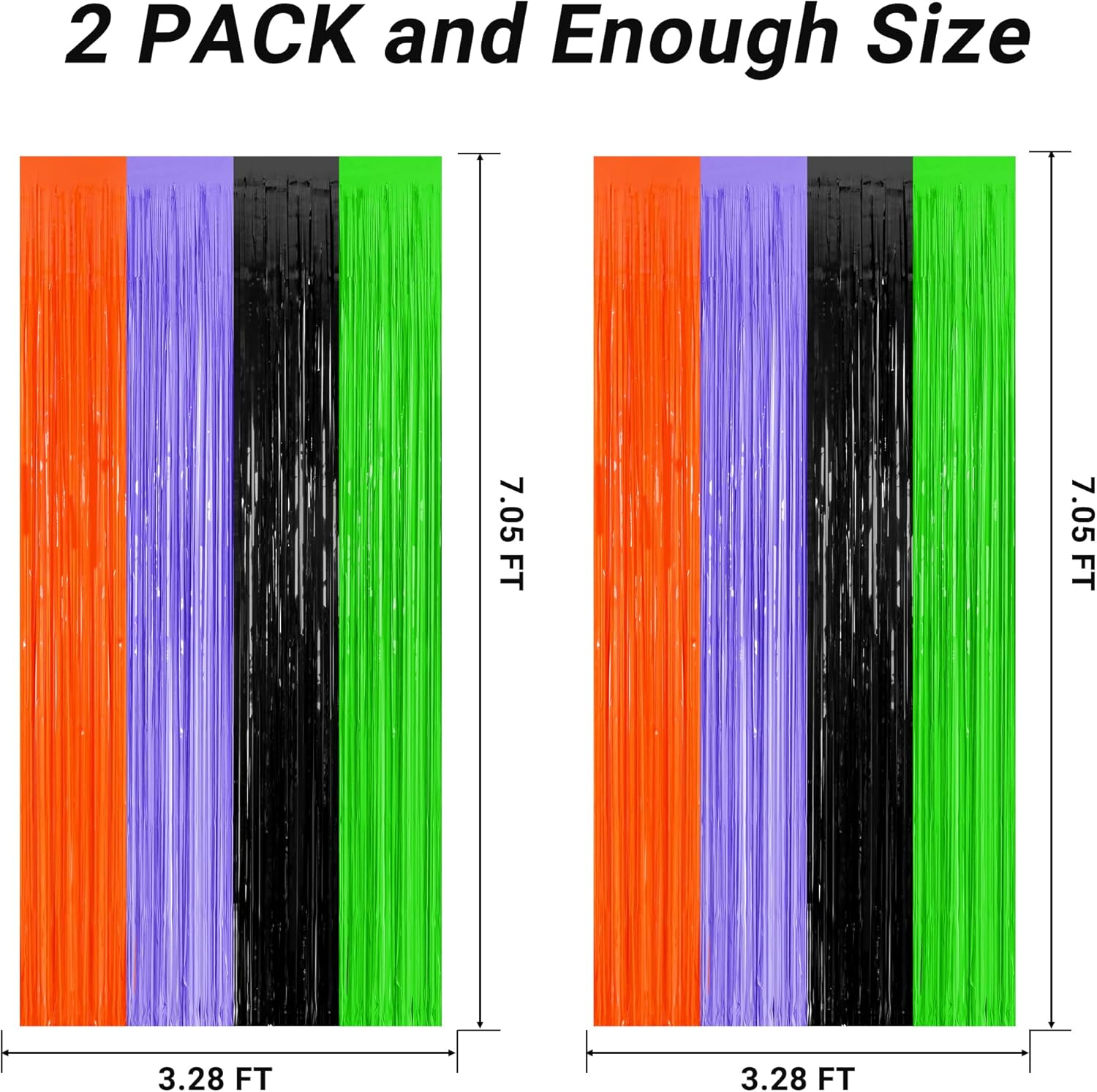 - Package Includes: You will receive 2 pcs orange purple black and green foil curtains, each measuring 3.28 ft x 7.05 ft, oversized to be cut to your desired length.