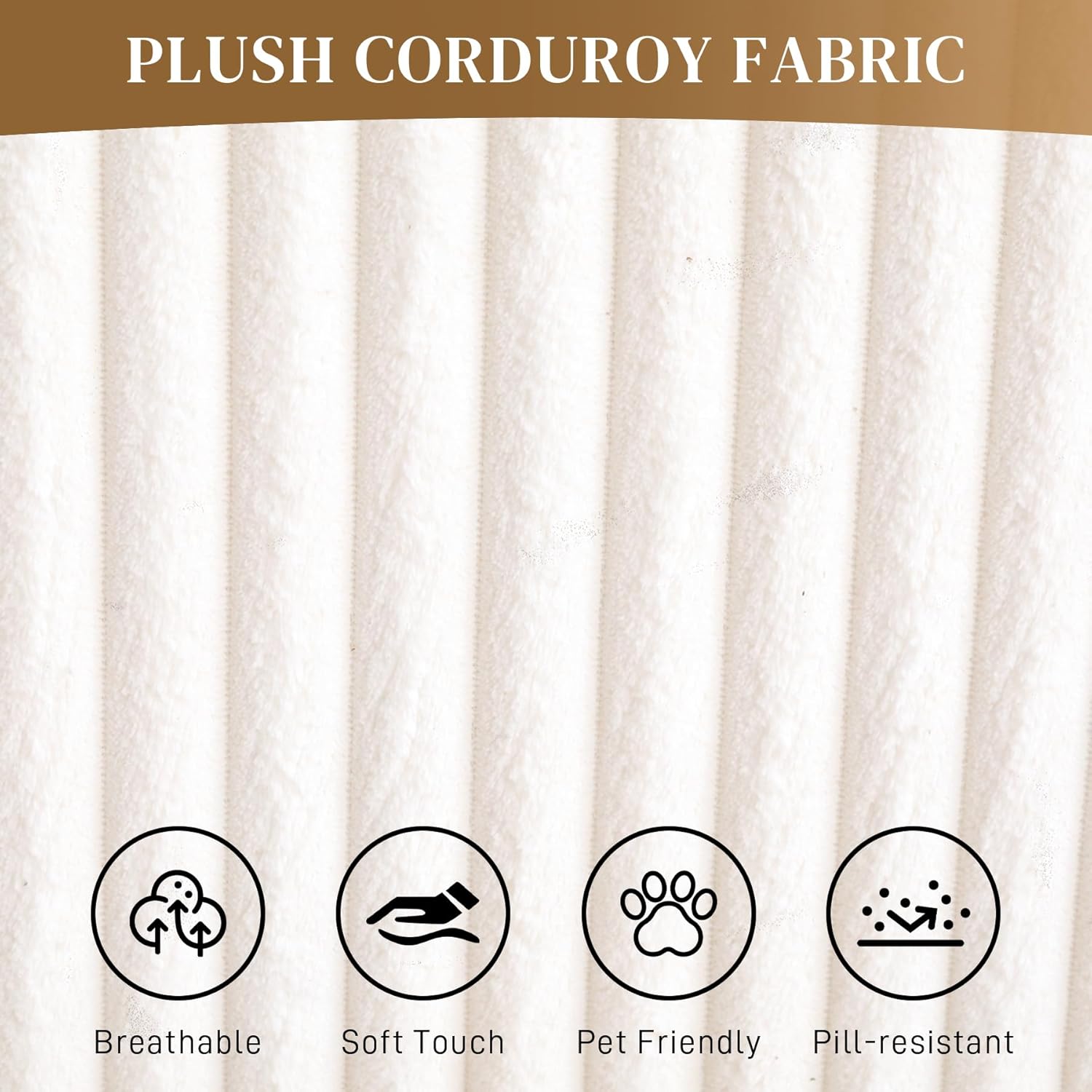 - 【Plush Corduroy Couch Sectioanal】Our compressed sofa set is wrapped in premium corduroy, giving you unrivaled softness and warmth. The upgraded material offers better breathability and stain resistance, making the fluffy couch easy to care for and clean. The unique texture and soft sheen make it stand out, providing gentle pampering no matter the season