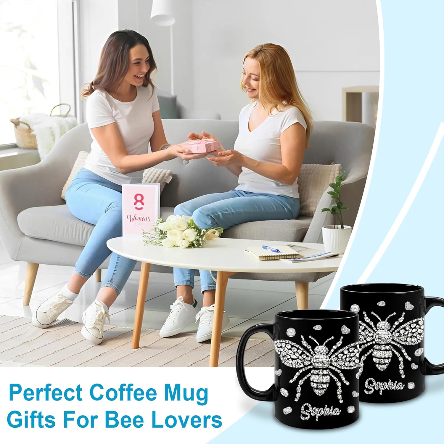 Hyturtle Personalized Jewelry Bee 2D Mug - Bee Keeper Gifts For Women Lovers Teacher - Honey Gifts For Beekeeper Farmer On Birthday - Queen Honeycomb Decor - Custom Coffee Cup Ceramic Mug 11 Oz 15 Oz