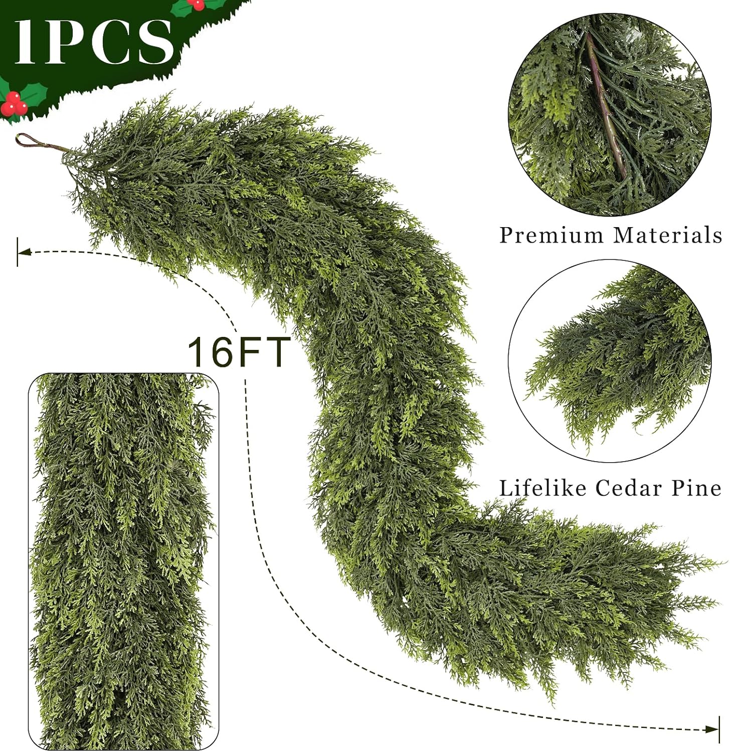 - [Quantity and Size]:The package includes 1 piece of artificial cedar garland, approximately 16 feet in length, which is perfect for decorating fireplace.