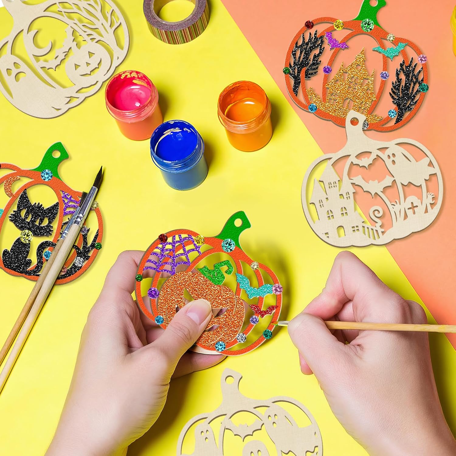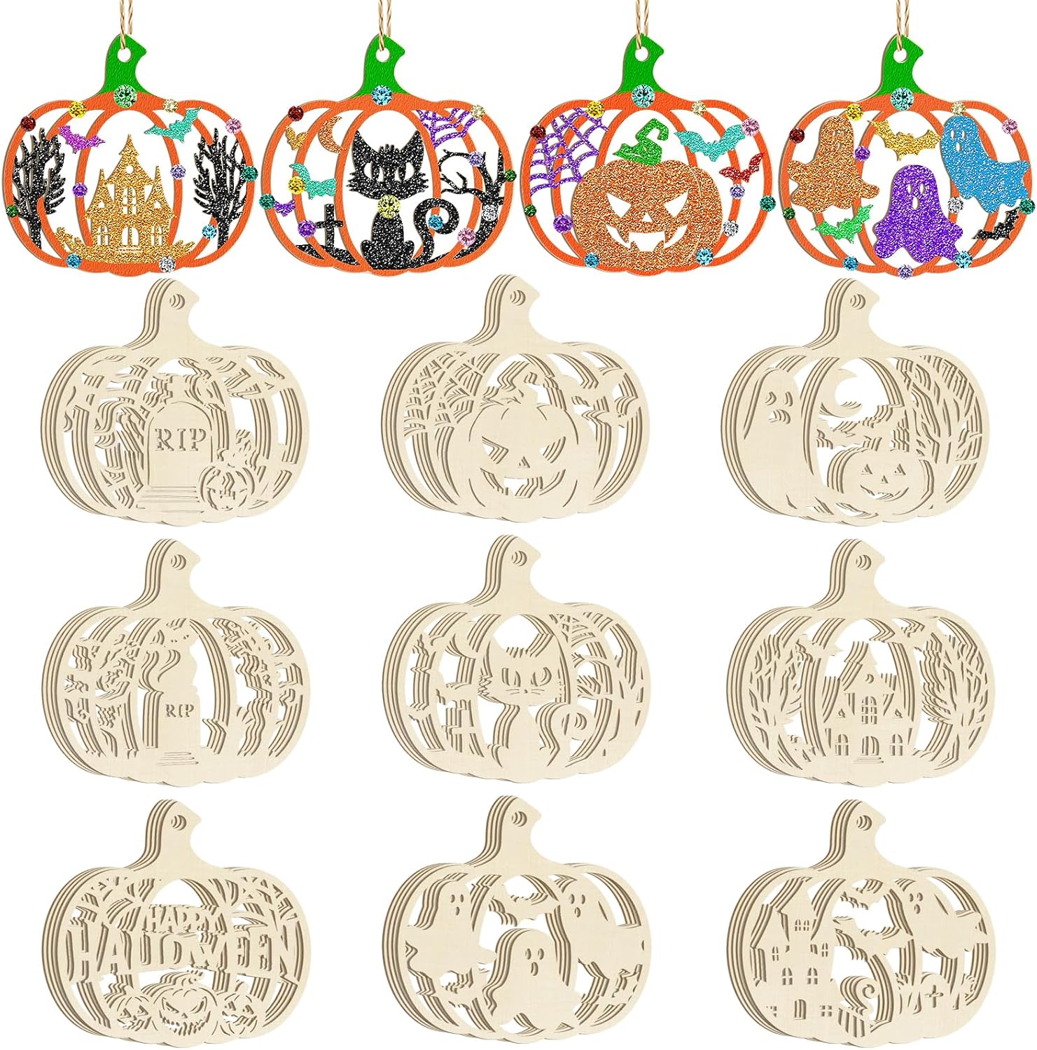 - Fall Ornaments Includes: 9 blank Autumn wooden circles of different shapes for DIY painting, each Halloween contains 4 pieces. Comes with 36 braided linen cords