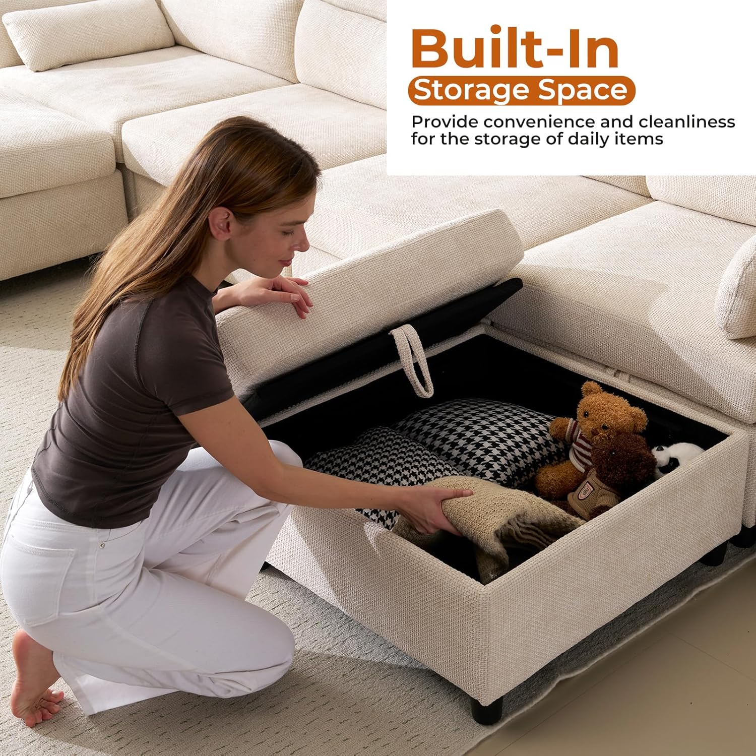 132'' Oversized Modular Sectional Sofa, U Shaped Comfy Sectional Couch with Large Storage, 6 Seat Chenille Deep Seat Cloud Sofa with 2 Throw Pillows for Living Room,Beige