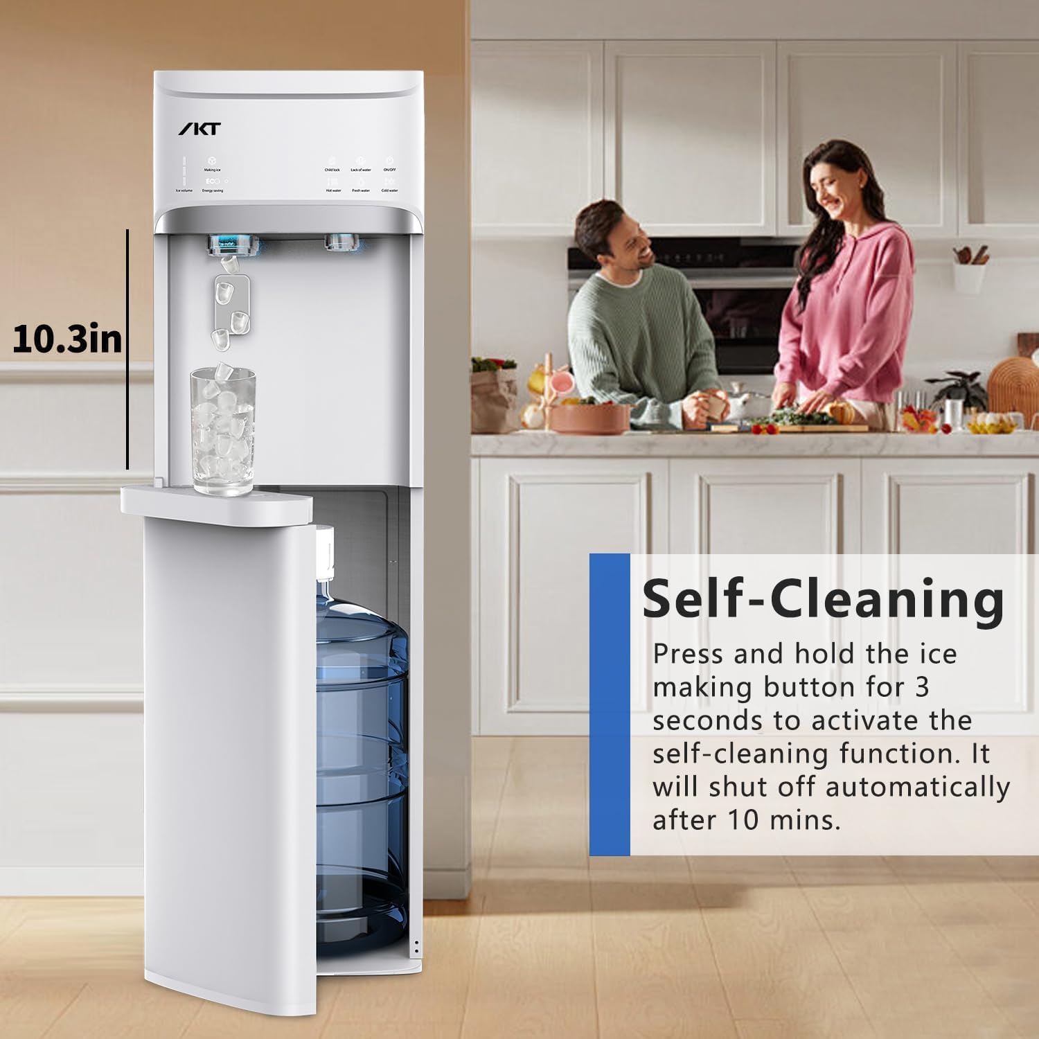 IKT Self-Cleaning Hot Cold and Room Water Cooler Dispenser and Maker Bottom Loading for 5 Gallon Bottle with Energy Saving Mode 22lbs Within 24hrs White